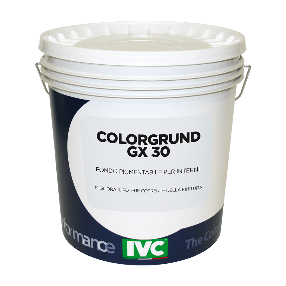 COLORGRUND GX30 è un fondo murale all'acqua per interni formulato a base di particolari resine in emulsione acquosa, pigmenti selezionati, cariche micronizzate ed additivi specifici che gli conferiscono le seguenti caratteristiche: ottimo potere uniformante e consolidante, ottima adesione sia su muri nuovi che già pitturati, ottima dilatazione e pennellabilità, ottima resa e facilità di applicazione. La particolare formulazione del COLORGRUND GX30 consente di uniformare e mascherare le eventuali piccole imperfezioni del supporto.